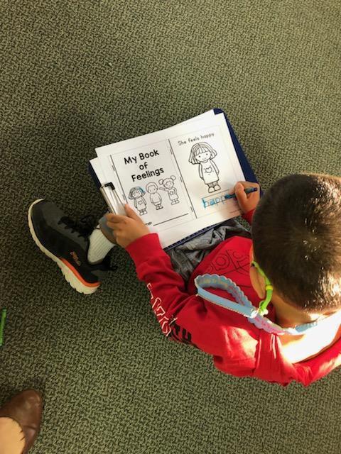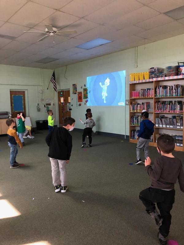 Kindergarten students practice some Yoga moves before working on learning about feelings.